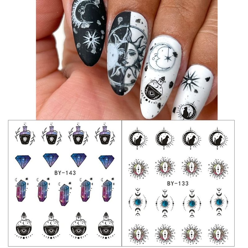 12 Sheets Water Transfer Moon Stars Nail Decals Horror Eyes Nail Art Stickers.