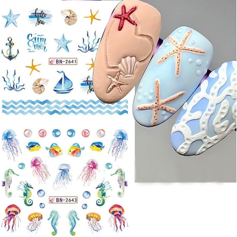 - 🐚Ocean Nail Art Kit: This ocean nail art sticker features summer elements such as starfish, seahorse, dolphin, shell, small fish, sea turtle, etc., making it easy to pair with various summer makeup and clothing.