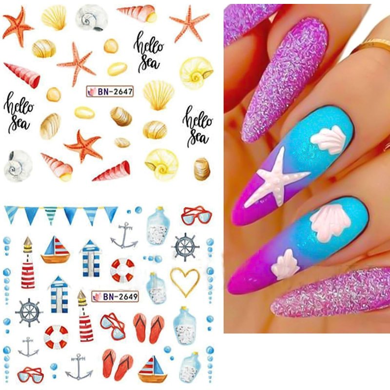 - 🐚Wide Occasion: These ocean nail decals are the best gift for your wife, girlfriend, mother, relatives, friends. Suitable for home use and nail salon. Colorful nail stickers can also be applied to UV gel nails, acrylic nails, natural nails, face makeup, telephone box, art design, home decoration, etc.