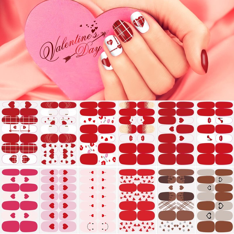 - 💗Valentine's Day Value Pack: You will get 12 sheets Valentine full wraps nail art sticker and 2piece nail files, rich colors and classic patterns, such as heart kiss love etc. which can offer you multiple choices, satisfy your rich imagination of nail DIY and create your own Valentine.