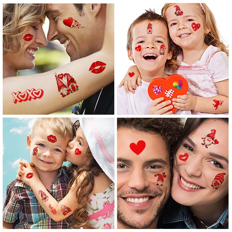 - Valentines Day Party Favors: The package comes with 12 sheets different valentines day tattoos stickers, enough for sharing with your friends or family; These valentine's day temporary tattoos will add more fun to your Valentines-themed birthday party, making your party more attractive and leaving a deep impression on your guests.