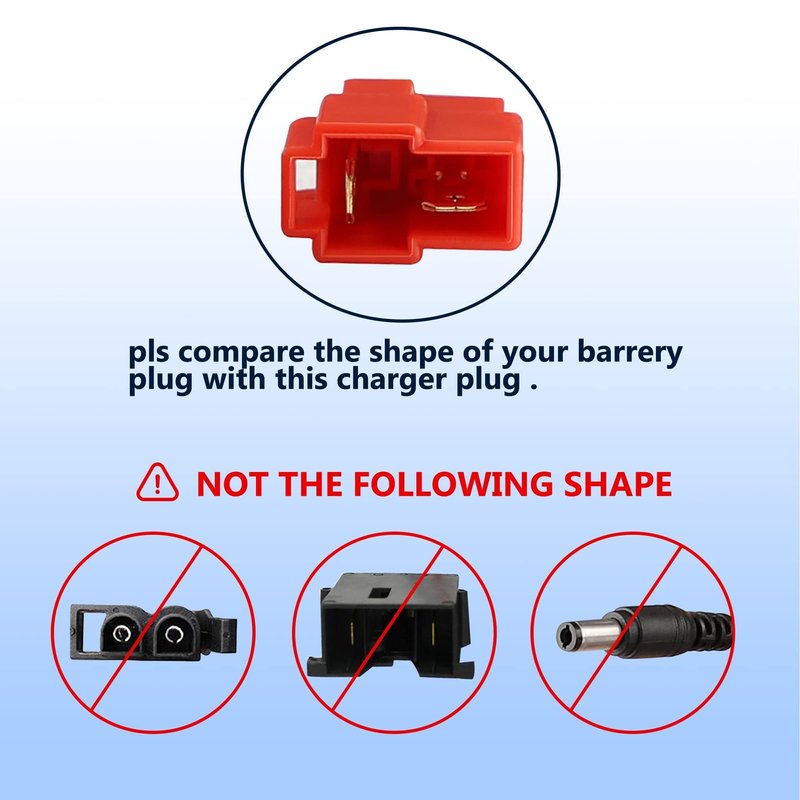 - ⚠️【Friendly Reminder】📢Before purchasing, make sure to verify the compatibility and connector type of your battery. 📢Prior to buying this charger, ensure that the battery is not damaged. If the electric car has not been used for 2-6 months, the battery may be in a low voltage state. If the charger consistently displays a green light during charging, it indicates that the battery needs to be replaced.