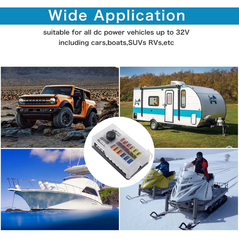 - 【Optimal Conductivity】Whether you are building a large land-based lighting setup, or adding electric windows, The fuse box has a capacity of 100A, each fuse is 30A, and has a ground bus, which is enough to protect all your hard work.