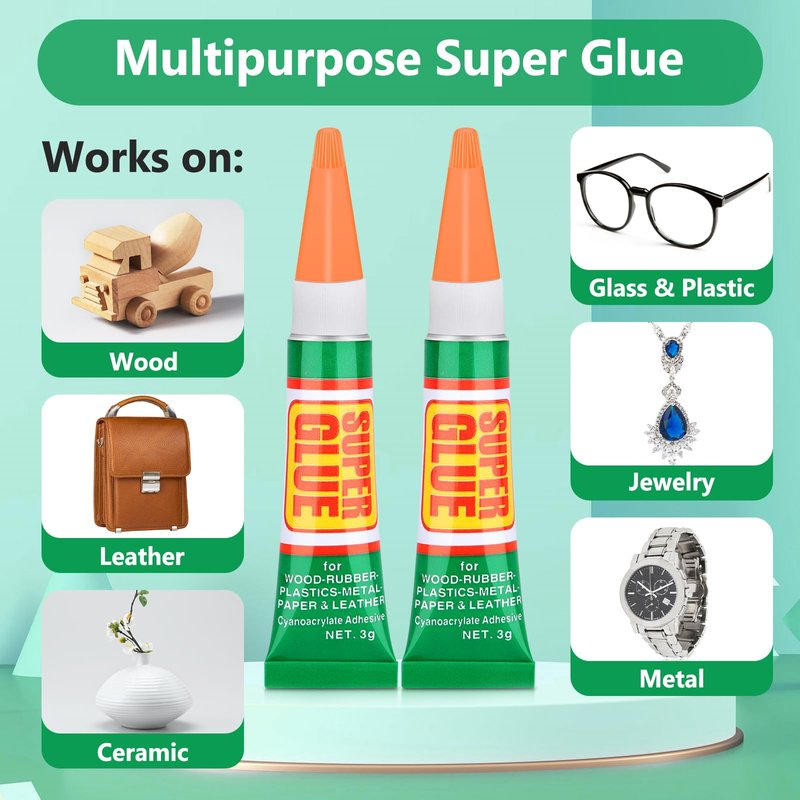 12 x 3g Super Glue Strong Adhesive, Fast Drying SuperGlue Liquid Cyanoacrylate Glue Flexible Precise for Plastic, Crafts, Ceramic, Wood, Metal, Bead Jewelry Making Leather Repairs (Single Use Tube)
