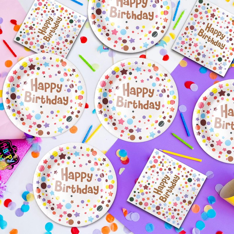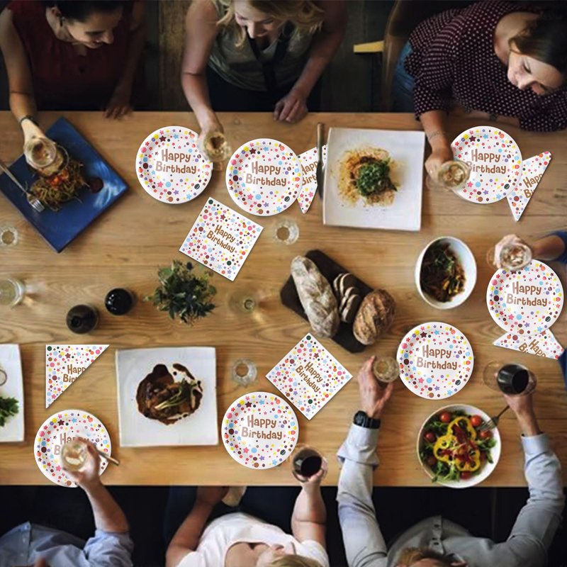 - Unique Design: Featuring a vibrant "Happy Birthday" message on a multicolored polka dot background, these happy birthday party supplies add a festive touch to your happy birthday party supplies.