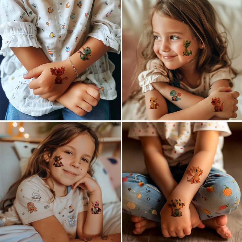 - 𝗟𝗮𝗿𝗴𝗲 𝗾𝘂𝗮𝗻𝘁𝗶𝘁𝘆: Our Kids dinosaur tattoo provide enough quantity for sharing. Ensure every child has the opportunity to get his or her favorite dinosaur tattoo stickers at parties or activities, which increases the sense of participation and satisfaction.