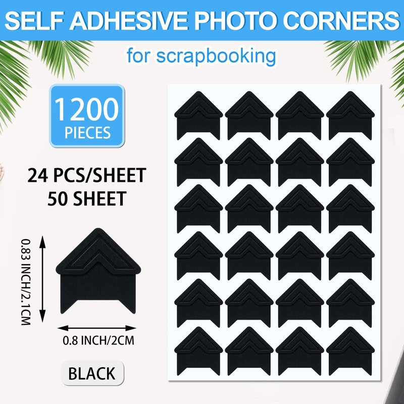 1200 Pcs Photo Corners Self Adhesive Black Photo Corners for Scrapbooking and Stamping Supplies DIY Scrapbook Stickers Album Diary Personal Journal Diary Organizer Christmas Memory Book Picture Corner