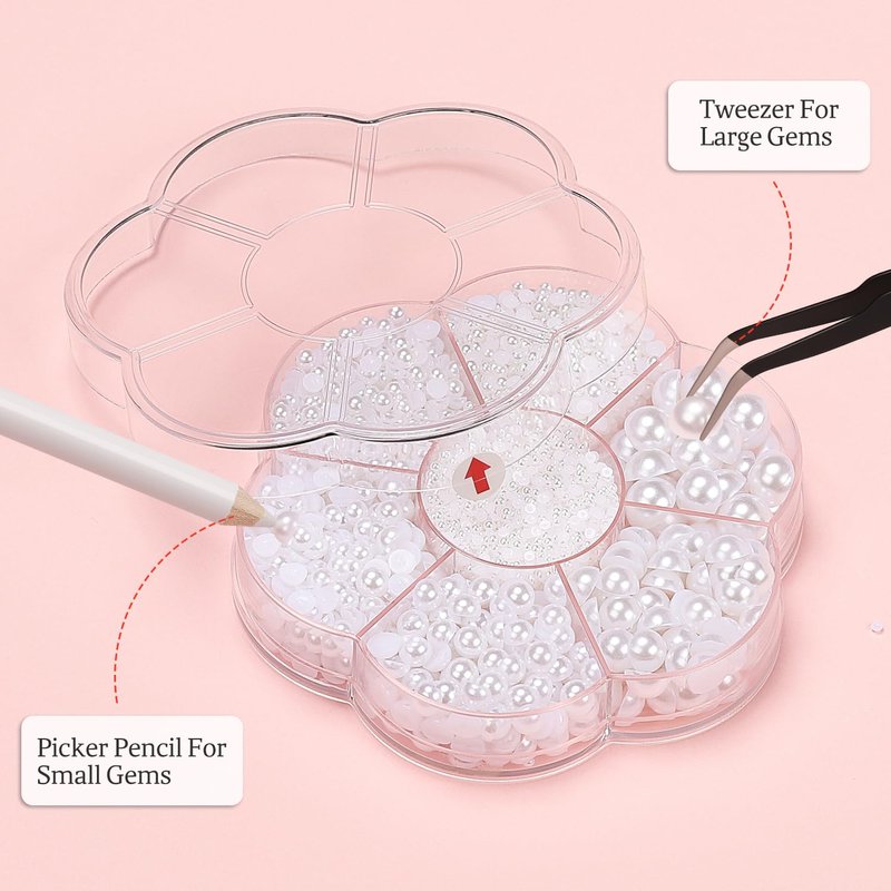 - 【Package Contains】1 Box of flat-back half round beige pearls, 1 Box of flat-back half round white pearls, 1 Pcs of pick up pencil and 1 Pcs of tweezer.