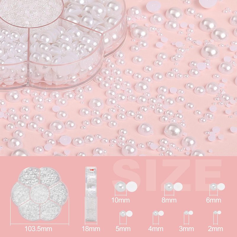- 【Multiple Sizes and Quantities】Each box of ABS flat back pearls comes in 7 sizes:2mm, 3mm, 4mm, 5mm, 6mm, 8mm, 10mm,A wide range of sizes and quantities to meet your needs.