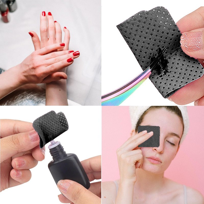 - Lint Free Nail Wipes: nail wipes, nail pads,eyelash extension glue wipes is made of high quality non-woven fabric, no scrap or crumbs shedding, lint-free, meet your high requirement for tidy and clean. No need to worry about nail polish remover wool everywhere. soft, absorbent, and sanitary, lint free wipes is harmless to your nails or skin. Use professional glue wiping instead of paper towels, ideal for for nail DIY at home, professional nail salon, eyelash extension.