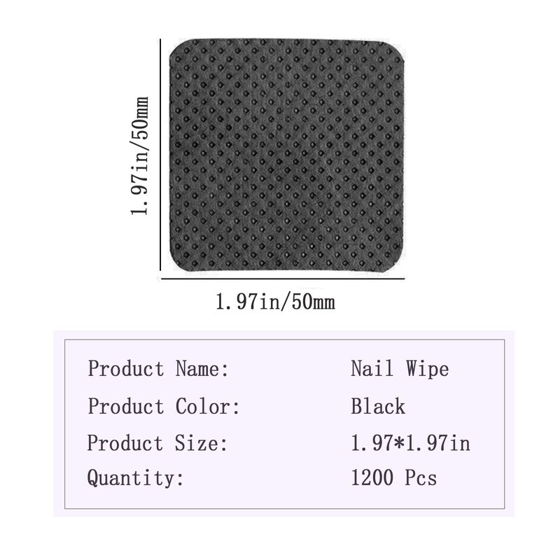 Lint free nail wipes,nail wipes, nail pads, lash wipes, nail lint free wipes, Soft and absorbent. Lint free wipes Great for use as Nail Polish Remover finishing wipe, Nail prep and Brush Cleaner without leaving behind any fibers.Great tools for professional beauty salon & at home use Glue Wipes Specifications: Nail Pads for Polish Removal Material: Non-woven fabric Size: 1.97" x 1.97" Color:Black Quantity: 1200PCS Features:Super soft / Strong absorbent / durable&disposable /Not easy to shed Lash Wipes Product Specialty High quality No need to worry about nail remover wool everywhere, this product will never shed wool, the best quality Lint-free Wipes Absorbable and Disposable Super absorbent soft non-woven fabric wipes are comfortable texture. Lightweight and portable to carry. The pinhole design is easier to absorb and remove nail polish, Disposable and easy to use. Nail Lint Free Wipes Multiple Usages: The polish remover pads can be used to remove eyelashes, makeup, nail polish & anything else you want to wipe, also ideal for applying facial creams or masks.Suitable for manicure and pedicure cleaning, will not ruin your perfect nails. Nail Polish Remover Pads How to Use After use the eyelash extension glue, quickly wipe the bottle mouth. Keep the bottle mouth clean, extended the eyelash extension glue use time. Lash Glue Wipes Wide Application: Nail Polish Remover Pads Eyelash extension glue cleaning wipes eyelash extension glue bottle wiping. Tweezers Cleanser Wiping the Brush & Pen Tip Makeup/Eyelid cleaning pads Phone screen cleaning pads