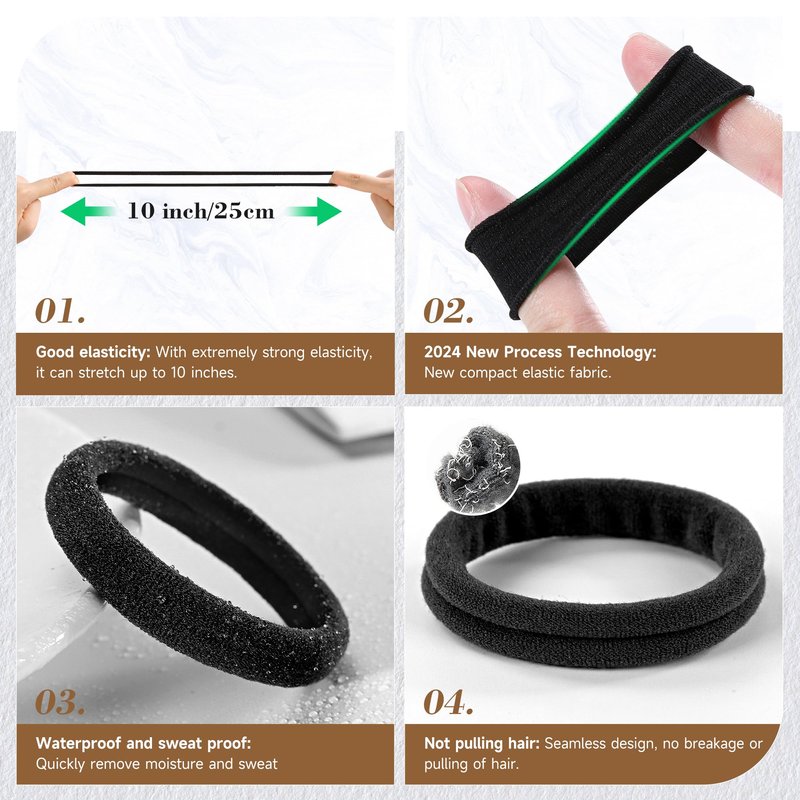 - Super Durable and Ultra Stretchy: Crafted from high elastic thick material, these hair bands are incredibly soft yet strong, ensuring a secure hold without damaging your hair. They maintain their elasticity, stretching up to 10 inches without losing their shape,making them ideal for thick hair.