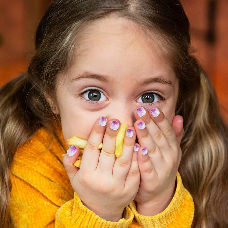 120pcs False Nails Press on Nails for Kids - Self-Adhesive Short Fake Artificial Full Cover Nail Art Kits Transation with Nail Glue Tabs for Girls Children (120pcs Sparkle Nails)