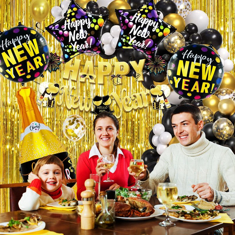 - Top-Notch Quality: Crafted from high-quality materials, our New Years Eve Party Supplies 2025 black and gold are designed to impress! The banner is made from sturdy cardstock, while our stunning balloons are crafted from thick latex and aluminum foil—perfect for repeated use! Get ready for a sparkle-filled celebration with confetti balloons and eye-catching fringe curtains to make your New Year's eve party pop!
