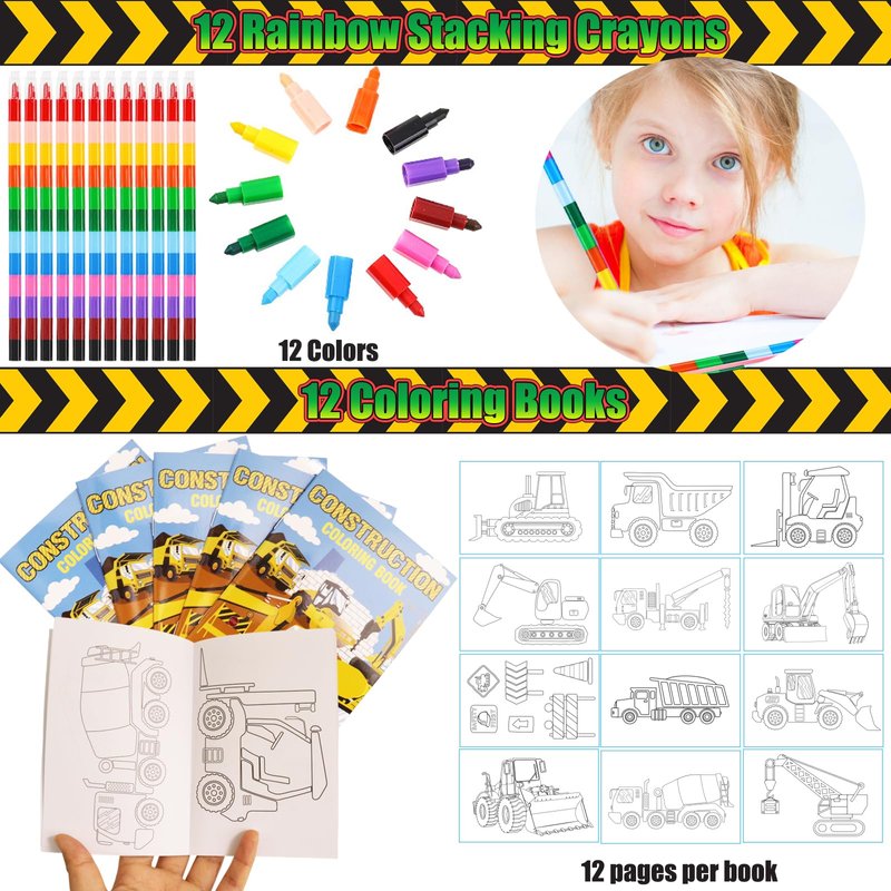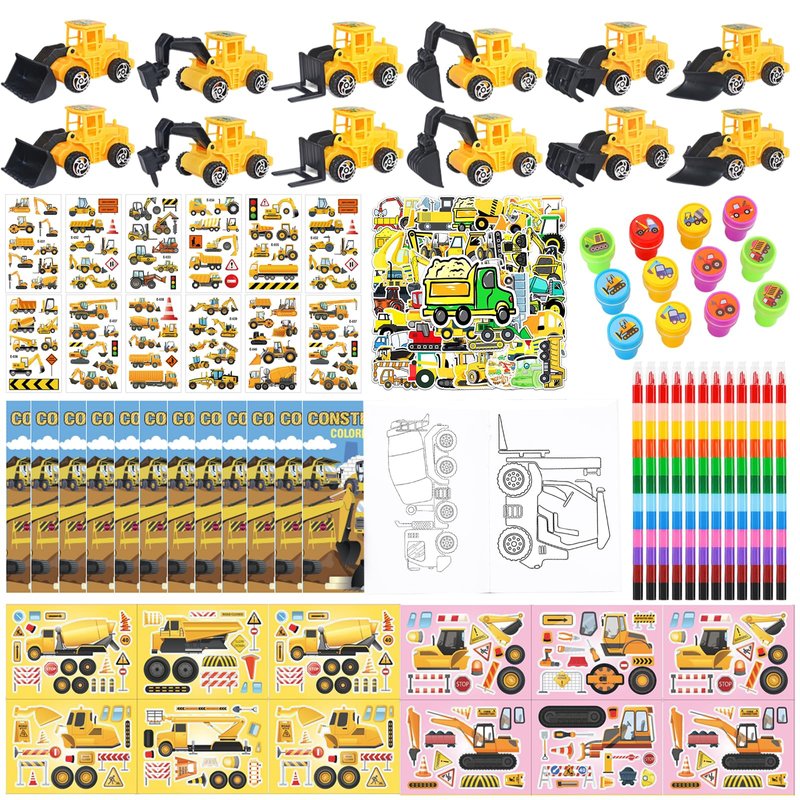 - 【Building Themed Party Delight】 - FOCone Building Party Gift Set brings an exciting sense of engineering to your child's birthday or event. Designed to capture the imagination of young people, this 122-piece set features an architecture-themed 12 Coloring Books, 12 Tattoo Stickers, 12 DIY Stickers, 12 Stampers, 12 Cars, 12 Crayons, 50 Stickers, all reflecting a cool construction site atmosphere.