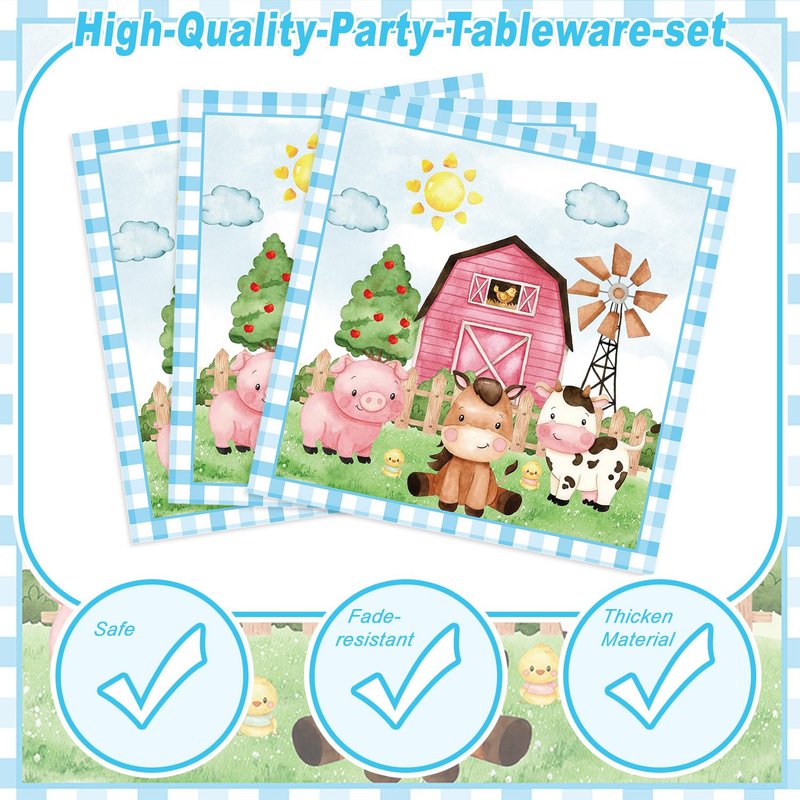 - 【Easy to Clean】These Farm plates and napkins party supplies are environmental friendly, you can throw them into trash can directly after party. You can save a lot of time to clean and enjoy party time with family and friends.