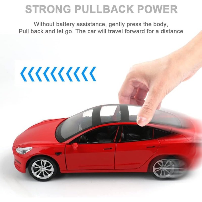 1/24 Diecast Model 3 Toy Car, Alloy Casting Model 3 Model Car Pull Back Collectible Vehicles with Sound and Light, 6 Open Doors, Model 3 Diecast Model Car Toy for Kids Adults (Red)