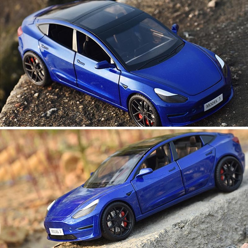 1/24 Diecast Model 3 Toy Car, Alloy Model 3 Model Car Pull Back Collectible Model 3 Vehicles with Light, 6 Open Doors, Exquisite Model 3 Diecast Car Model Toy for Kids Adults (Blue)