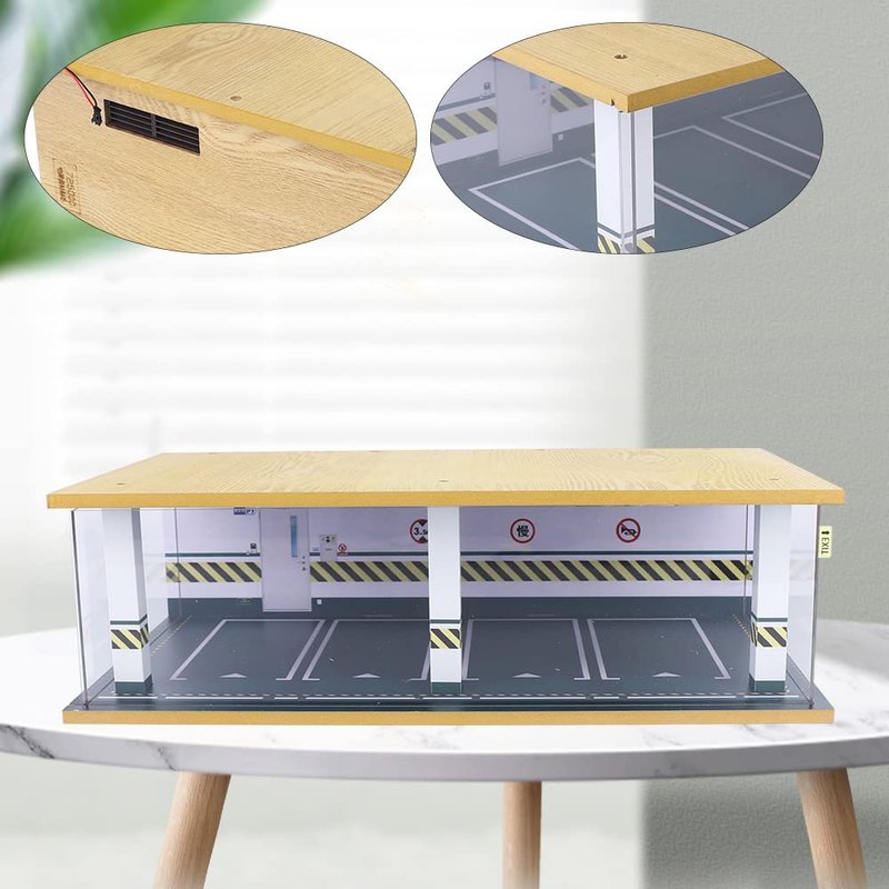 - Excellent Quality: The parking garage model is made of high-density wood board, aluminum alloy and acrylic material, which is cut, polished, UV printed and veneered, which is rust-resistant, sturdy and durable. The acrylic cover has high light transmittance, which can display the car model more clearly and prevent dust at the same time.