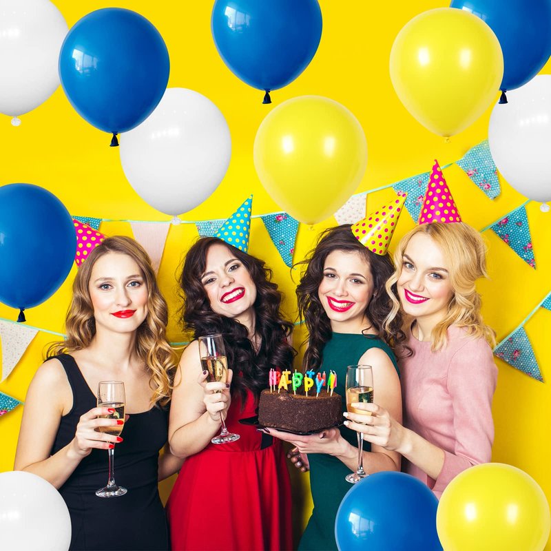 - Premium Quality Material - Our blue and white yellow balloons set is made of natural latex, which is thick and not easily burst. Each latex balloon is well-selected, good for both kids and adults. Please avoid sunburn, overheat, overinflated, pointed object and excessive friction.