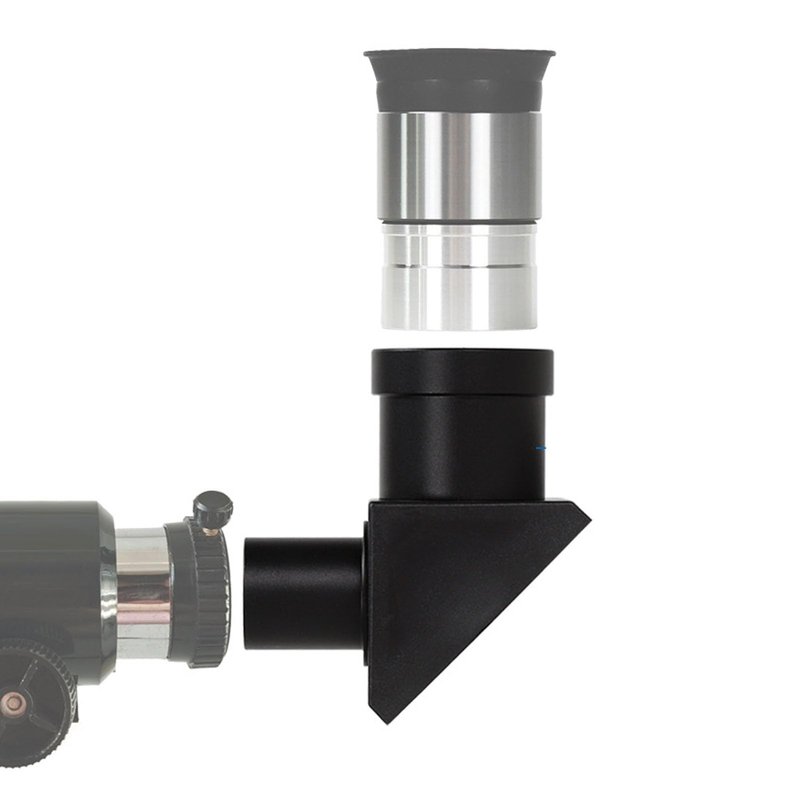 2. 90 DEGREE ANGLE: This 90 degree diagonal mirror works with refracting telescopes to hold the image upright, albeit upside down from side to side, without interfering with astronomical observations.