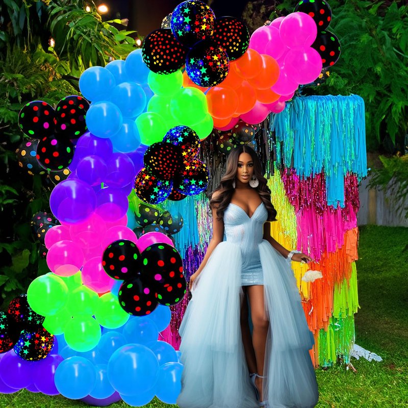 Our UV Neon Glow in the Dark Balloon Arch Kit is a versatile and vibrant addition to any party or event. This comprehensive kit includes an assortment of fluorescent red, blue, yellow, green, and orange balloons, along with unique black and transparent balloons with neon prints, perfect for creating a stunning visual display under UV light. These balloons are suitable for a wide range of themes, from glow and neon-themed parties to specific themed celebrations like Western, disco, 70s, and 80s events. They also make great decorations for festive occasions like birthdays, weddings, and Easter celebrations, as well as children's themed parties with popular characters from games and cartoons. The kit includes everything you need to create a dynamic and colorful balloon display, making it ideal for general party decorations, family gatherings, and even creative events like painting parties. Elevate your event with these versatile and vivid neon glow-in-the-dark balloons, perfect for adding a touch of excitement and vibrancy to any occasion.