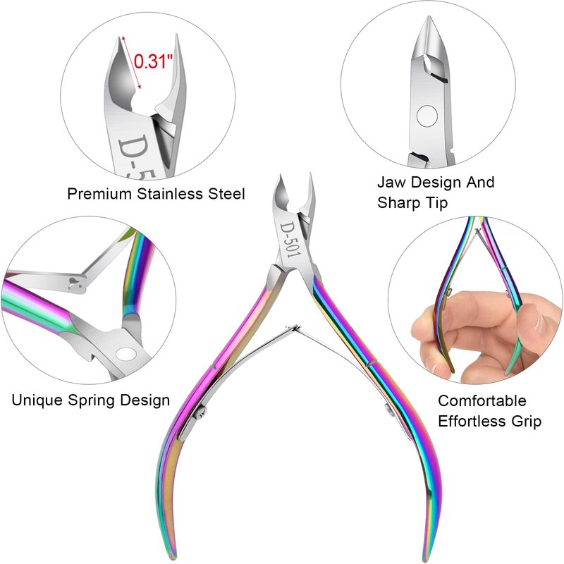 - Each Cuticle Nipper The Handle Uses A Double Spring Design, Ergonomic Design Gives You More Control And Grip While Holding And Cutting; Each Cuticle Nipper Is Protected By A Plastic Cover, To Avoid Accidental Cuts.