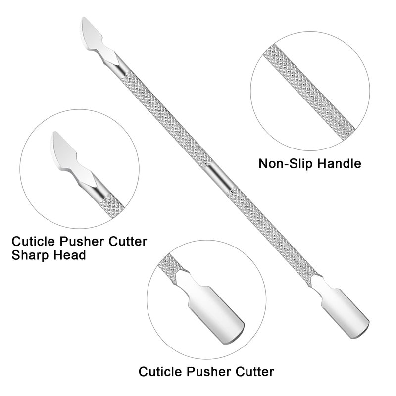 - Dual End Cuticle Pusher: Convenient For Cuticle Removal, Easy To Cut Or Scrape Away Dead Cuticle On One End, And The Other Curved Flat End Pushes The Dead Skin Back Flawlessly.
