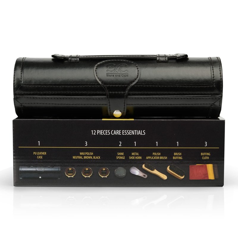 - ON-THE-GO-CARE — Enclosed in a sturdy PU leather case, this classic shoe shine kit is lightweight, compact and portable. Perfect for military, business and personal travels