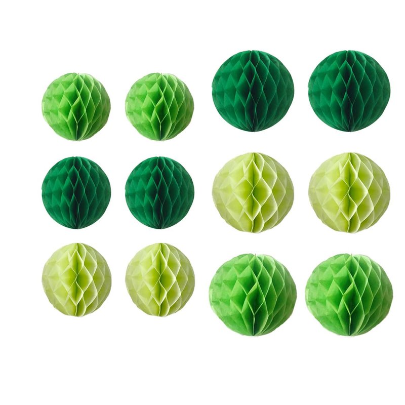 - 12pcs green theme party honeycomb balls: 6pcs 6inch+ 6pcs 8inch green pack honeycomb balls,paper flower balls, wall backdrop honeycomb balls, party nursery balls for decorations