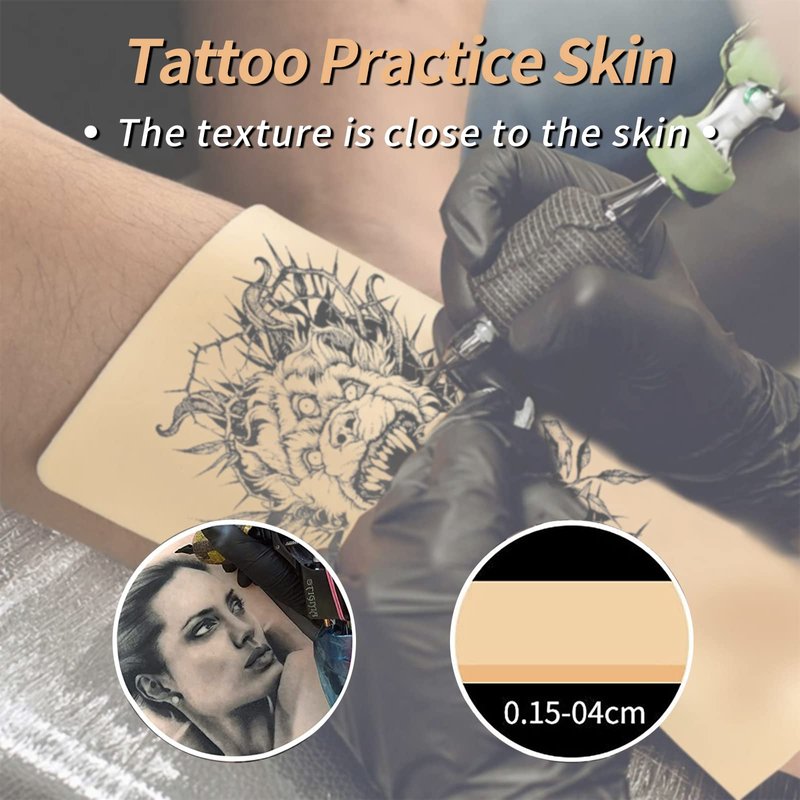 - 【Double Side Usage】- Both sides of each tattoo skin are blank. Thick enough for double sided usage.Each size of practice skin is 8'' in length,6'' in width, thickness about 0.04''.