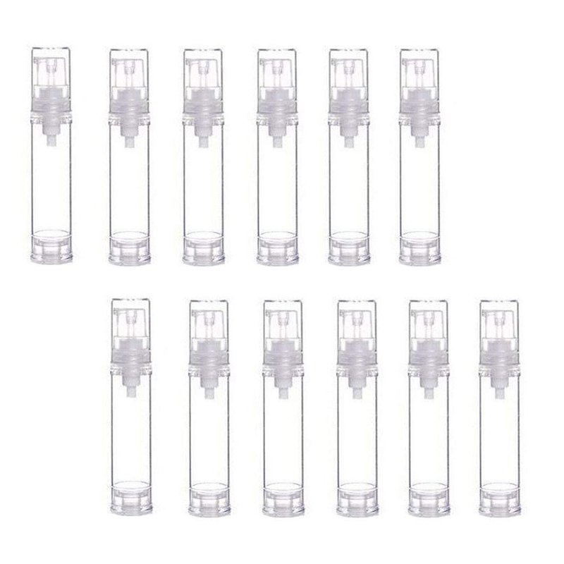 12Pcs Clear Plastic Airless Vacuum Pump Bottle Empty Refillable Cosmetic Makeup Sample Packing Cream Lotion Toiletries Liquid Storage Containers Vial Pots Perfect For Travel(10ml/0.34oz)