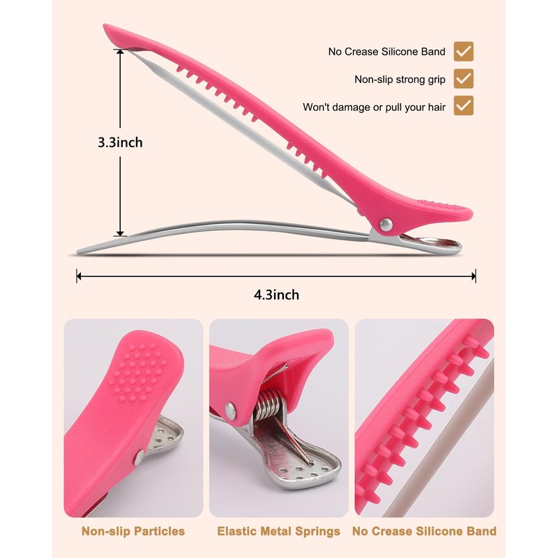 - 【No Crease Hair Clips】Equipped with special silicone anti-crease strips to ensure that your hair remains undamaged and free from creases while using the clips.