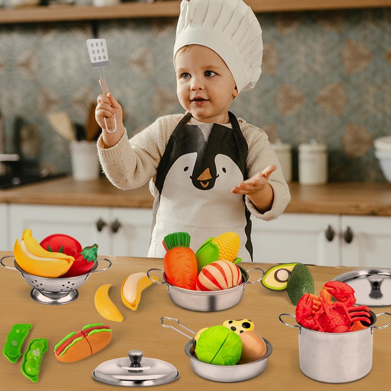 Pretend Play Stainless Steel Pots and Pans for Kids Age 3+