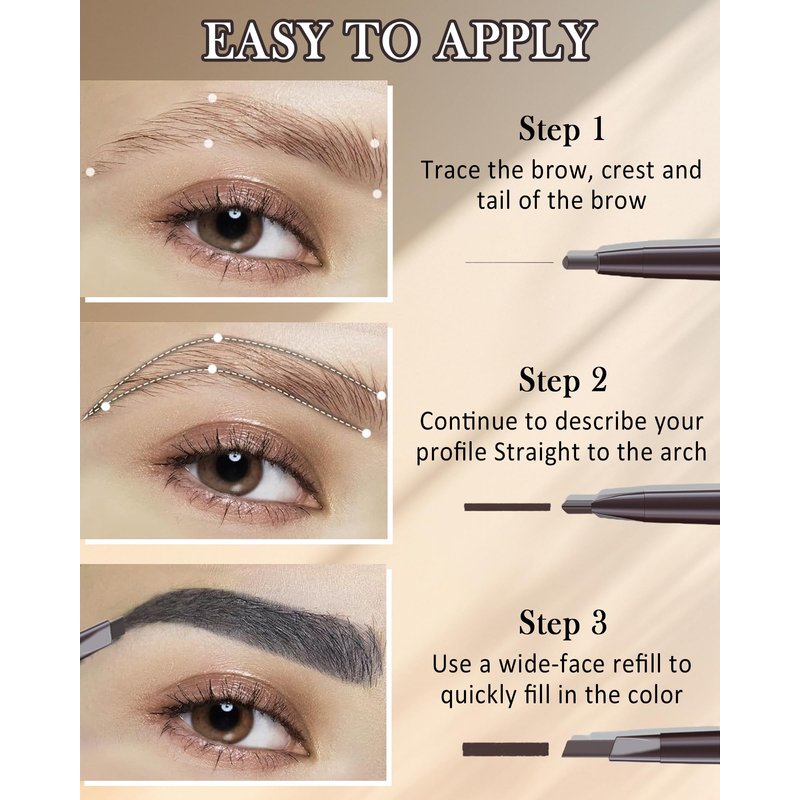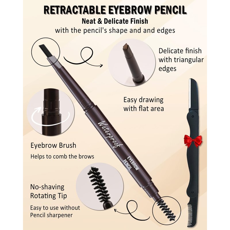 - Double-Headed Design - Our eyebrow pencils feature a triangular tip that allows you to shape and blend your brows for a natural-looking finish. And the included brow brush for grooming and blending brows. Also the retractable eyebrow pencil no need to sharpen, rotate the eyebrow pen to refill and use. The classic brow pencil can help you create the perfect brows you've always wanted.