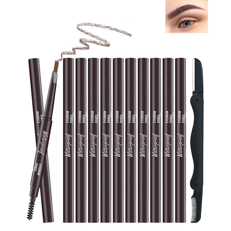 - 12Pcs Eyebrow Pencil Set - Our eyebrows pencil is cruelty free and vegan. It matches diverse skin tones and hair colors. It comes in 5 popular colors: Black, Light Brown, Medium Brown, Gray, and Dark Brown. This eyebrow set include 12Pcs the same color eye brow pencils & 1Pc eyebrow razor. It allows you to effortlessly create a natural, three-dimensional brow shape. It can meet your daily needs.