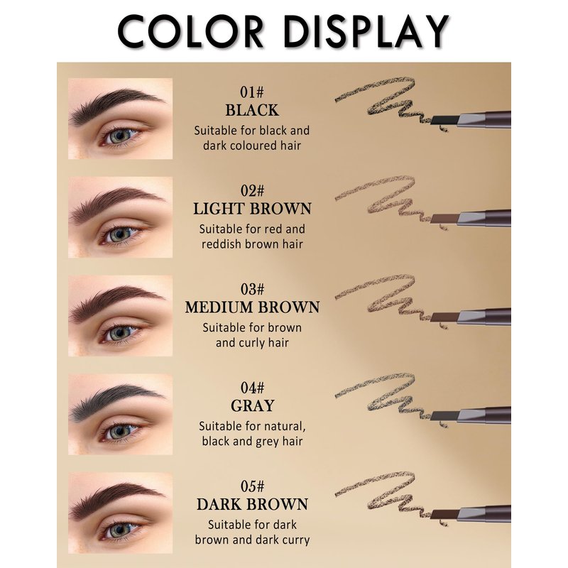 - Waterproof & Long Lasting - Our waterproof eyebrow pencil is long lasting, durable and smudge-proof. It won't smudge, smear or fade that ensure all-day wear. When you're sweating, swimming or showering and you don't need to worry about the color smudging or fading. Keeps your brows in place even in hot and humid conditions. So you can keep confident the entire day.