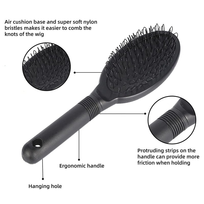 - Looped Nylon Brush: the airbag comb and thin handle comb features looped nylon bristles design meets Ergonomic,soft bristles,can easily handle frizzy hair without pulling hard,allows the bristles to never get snagged on tangled hair, providing better protection for fragile wigs and natural hair.