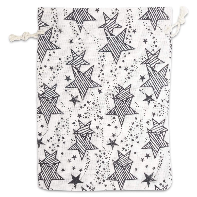 12pk - 4x6 Cotton Canvas Muslin Gift Bags w. Drawstring for Presents, Party Favors, Samples (Black Stars, Small) by TheDisplayGuys