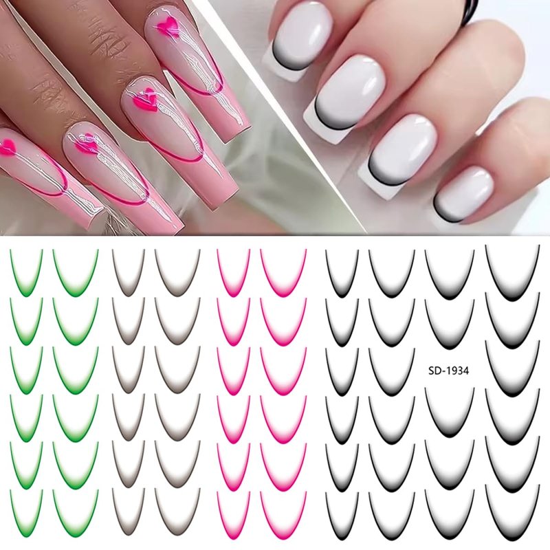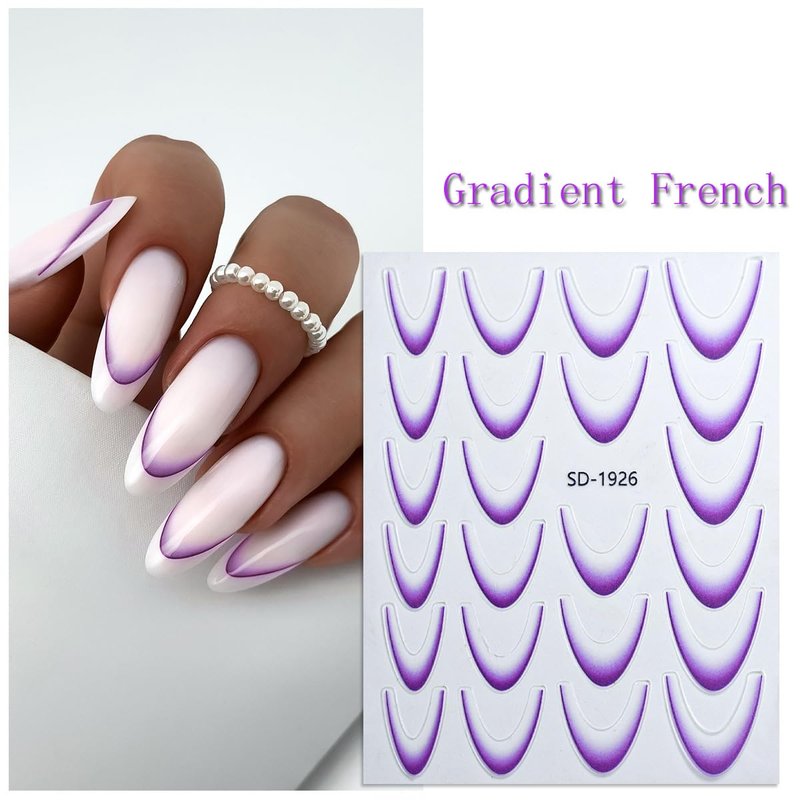 - Fashion Design: 3D Gradient French nail sticker and decal stripes curved lines design combines popular elements and is very suitable for fashionable women and trendy girls. Professional manicure for nail learners and nail lovers