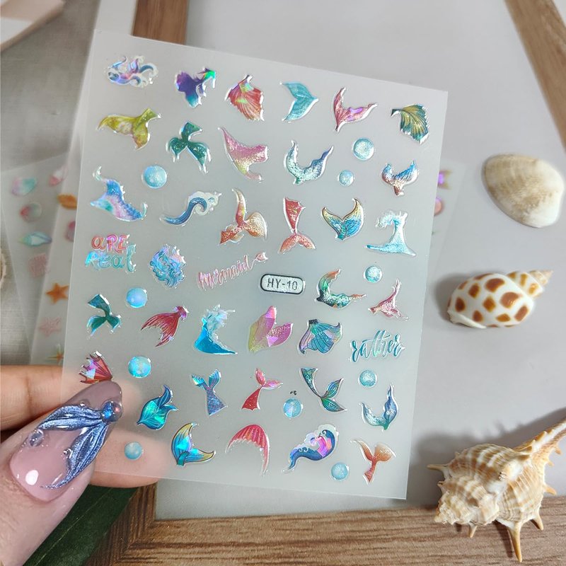- Easy to Use: The 3d self adhesive design mermaid nail stickers, just peel it from the paper and stick it on you nails. Easy to use, Ideal for natural or acrylic nails