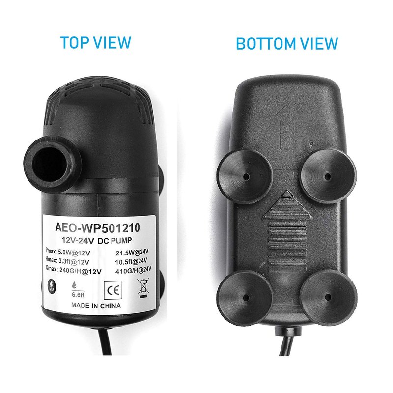 12V - 24V DC Brushless Submersible Water Pump, 410GPH, for Solar Fountain, Fish Pond, and Aquarium