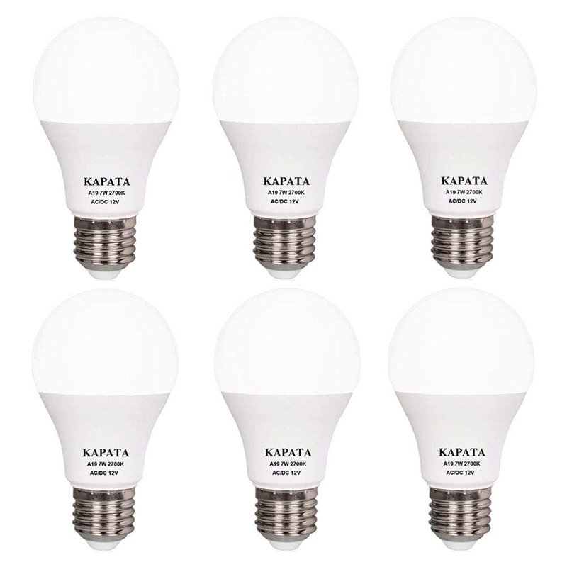 12V A19 LED Light Bulb Soft White 2700K 60 Watt Halogen Equivalent A19 Bulbs E26 Screw Base , for RV , Boat , Camping , Outdoor Solar Powered Lighting , Off Grid Lighting Application , 6-Pack