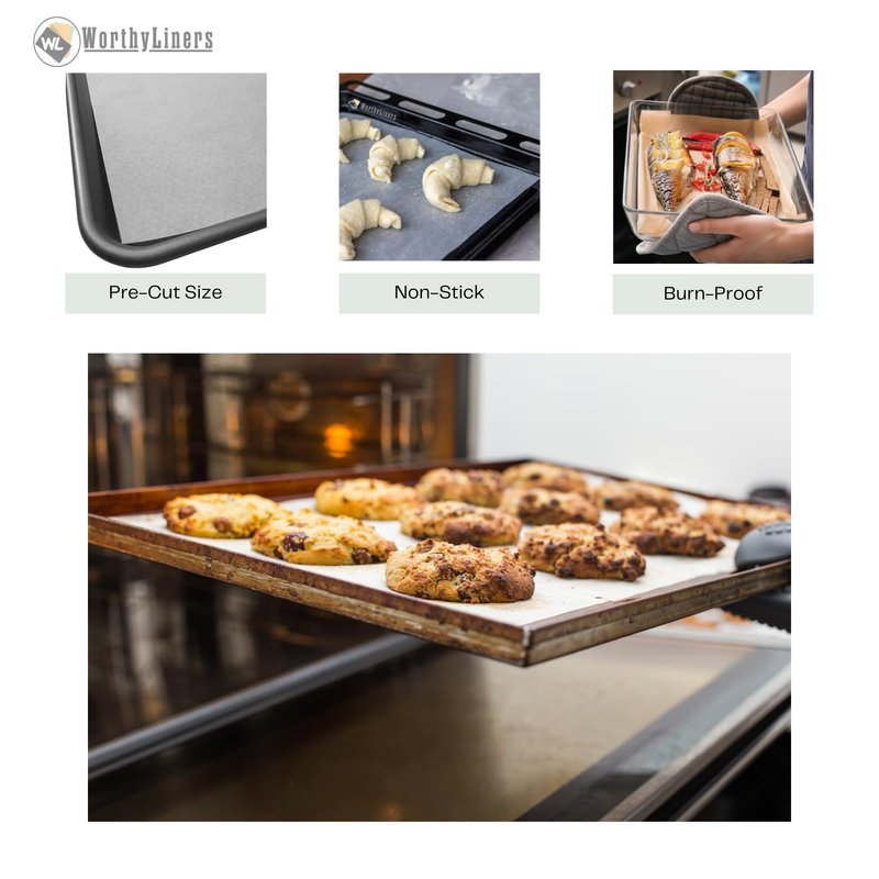 12x16 Parchment Paper Baking 200 Half Sheets | Worthy Liners Non-Stick Precut Perfect for baking cookies and cakes - Made in USA