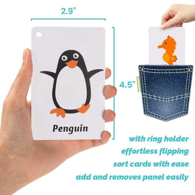 - ★ DESIGHNED FOR CHILDREN : Developed flash cards toy made of high-quality, double-sided film with smooth coating, The flashcards are hole-punched so you can easily organize the cards using the included metal rings and ensure you never lose a card, It is my first educational cards set that can be used for many years.