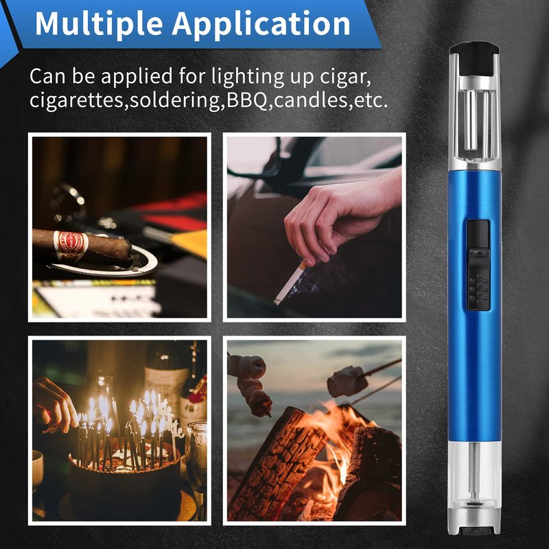 1300 ℃ Jet Torch Lighter Pen Style Adjustable Flame Refillable Gas Cigar Cigarette Lighter Fire Starter with Visible Gas Window,Blue