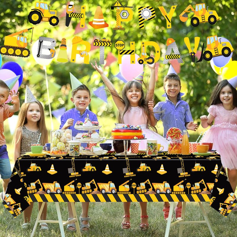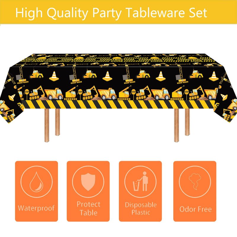 - Package Contents: Include A set of construction happy birthday banner, 6pcs of construction hanging swirls, 2pcs 54" x 108" construction tablecloth, 20pcs 7 inch paper plates, 20pcs 9 inch paper plates, 20pcs napkins, 20pcs 6.3" forks, 20pcs paper Cups