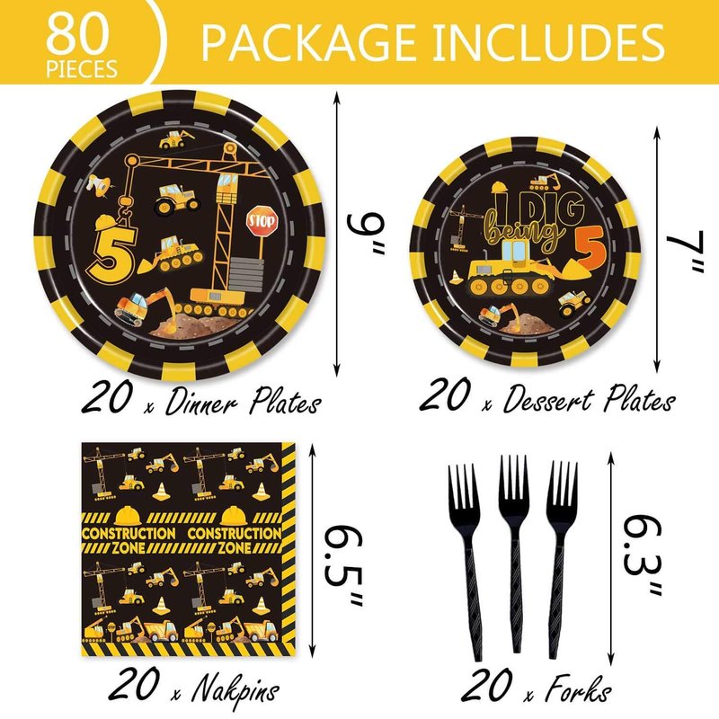 - Many Occasions: Construction 5th birthday party tablewares are great to decorate Construction 5th birthday party, Construction five years old party, Dump Truck fifth birthday party, etc. Construction five years old party supplies can make your party theme more distinct, and the party atmosphere more high.