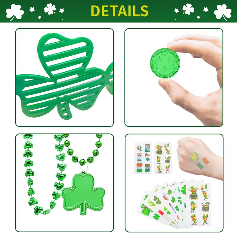 - LUCKY SIGN: St. Patrick's day party favor accessories kit is designed with the classic clover elements and green theme, symbolizing life, vitality and hope, suitable for school students, friends, family or anyone who celebrate the spirit of St Patrick's day. Enjoy the holiday and great time with your friends or family.