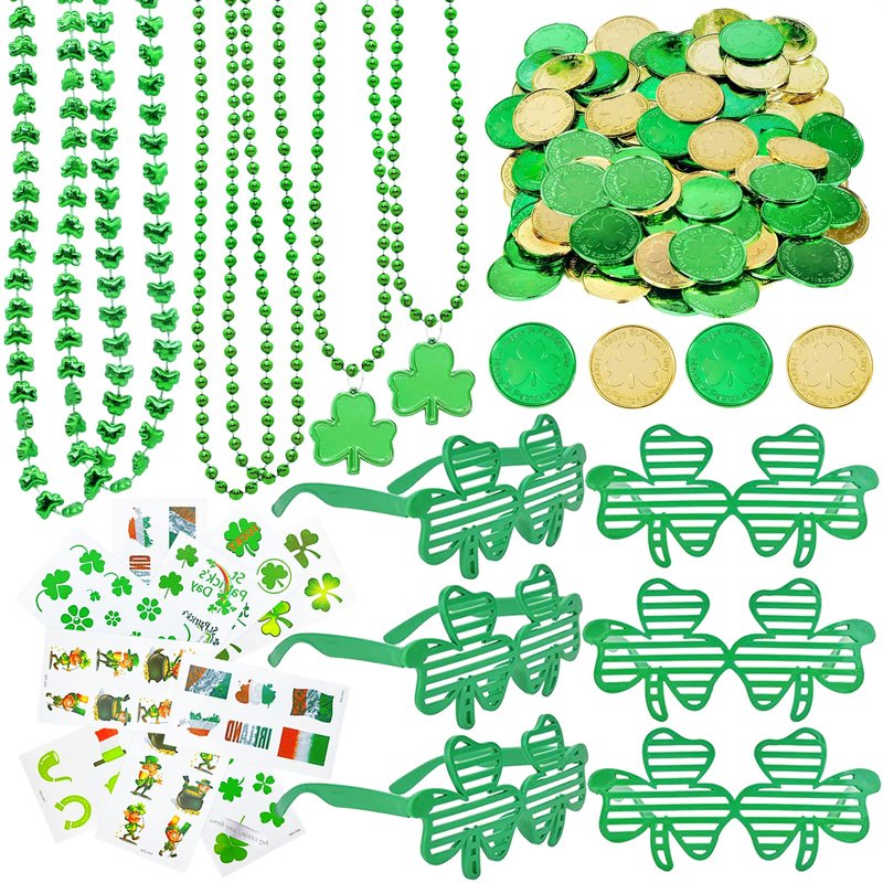 st. patricks day accessories accessory decorations party favors st saint patrick's theme parties shamrock glasses necklaces bracelets face stickers decoration supplies patrick temporary tattoos gift lucky friends family Irish Ireland decor luck coin